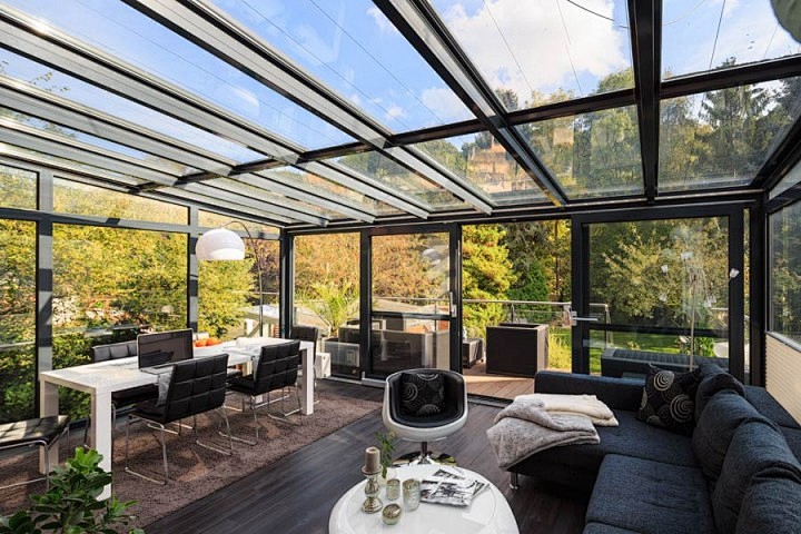 From the perspective of exterior design, the aluminum alloy glass sunroom has a "transparency" gene and can be called the "light and shadow magician" in architecture. The main frame is made of high-strength aluminum alloy material, with simple and neat lines, and can be flexibly customized according to the style of the house: whether it is the sloping roof design that is suitable for Chinese courtyards, the flat roof minimalist style that is matched with modern villas, or the curved dome that is suitable for European gardens, it can seamlessly integrate into the overall architectural context without destroying the harmony of the original space. The large area of tempered glass covering (including the top and sides) breaks the constraints of the "wall" to the greatest extent possible - in the morning, the first ray of sunlight can cover the entire sunroom without passing through the gaps in the windows; In the afternoon, clouds slowly drifted over the glass roof, and light and shadow formed flowing mottled patterns on the ground; In the evening, the setting sun dyes the glass warm gold, and sitting in it feels like being in a "living room under the sky". Looking up, you can see the starry sky and sunset, making the natural landscape the most vivid "background wall" in your home.