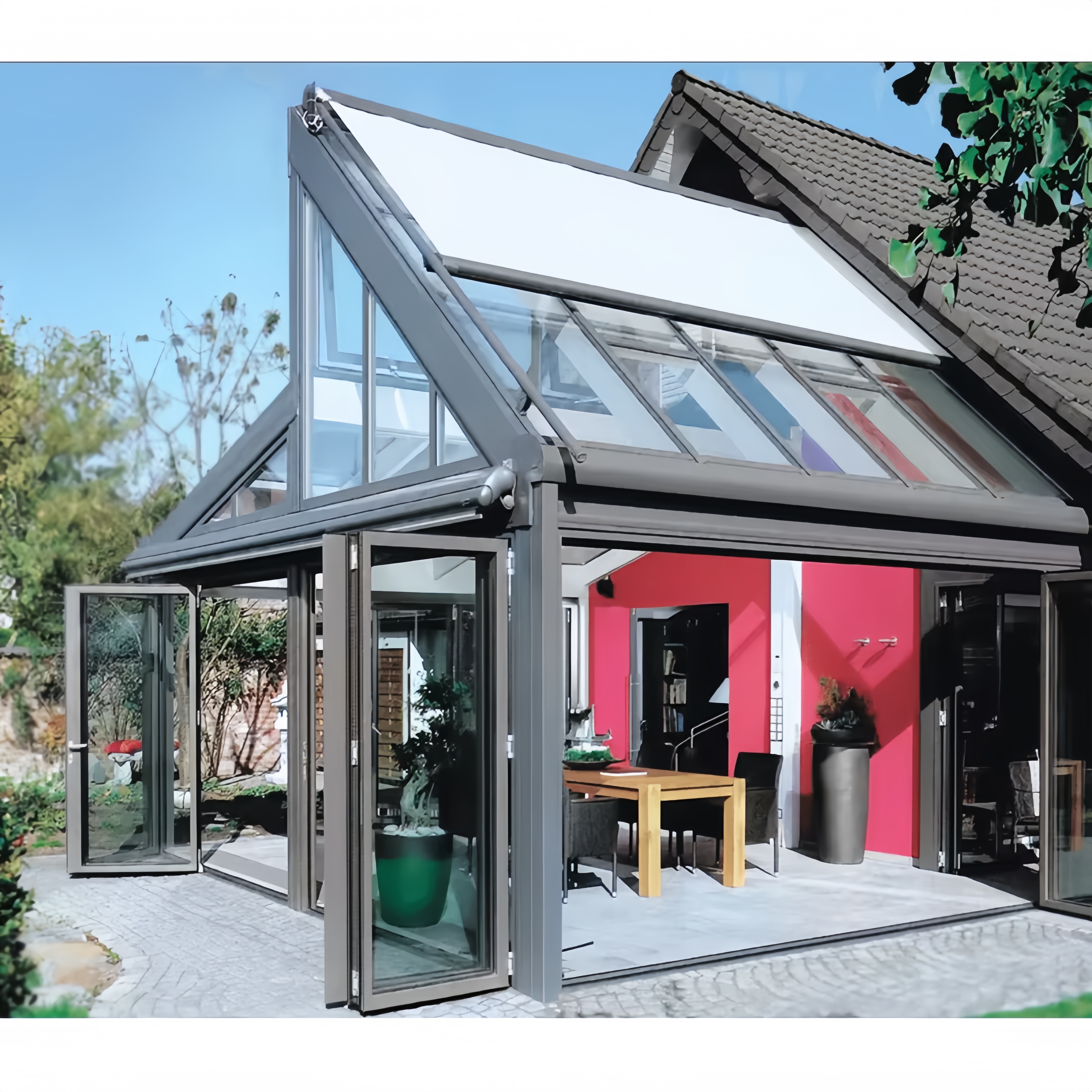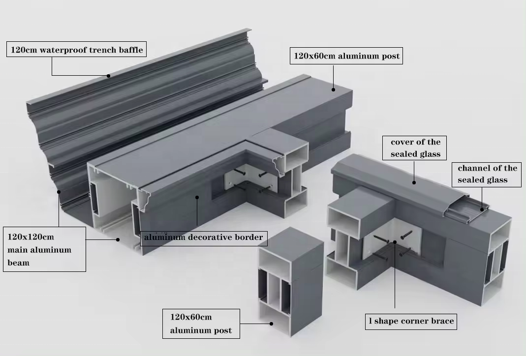 Functional advantage: 24/7 life expansionAluminum alloy sunrooms break the spatial boundaries of traditional architecture and create a 'third living space'. Its framework adopts modular design and can be customized into various shapes such as flat top, sloping top, and herringbone top according to t